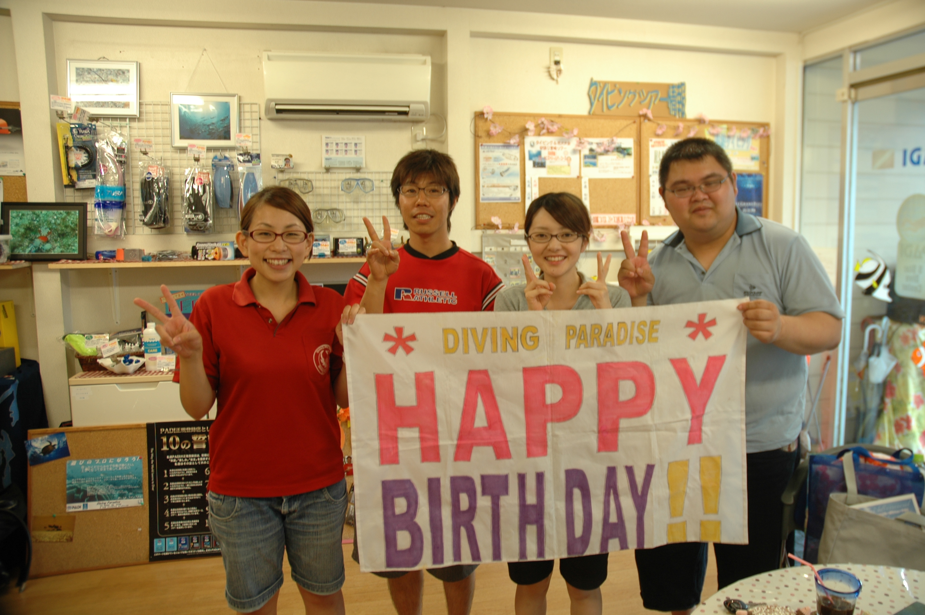 こんにちはわーい(嬉しい顔)今日も一日暑かったですねぇ晴れ 今日は、かわいいオープンウォーターダイバーコースの海2日目かわいい   CIMG3901.JPG もちろんこれはU原さんのBCDではございません。。。 今日もばっちし潜れましたぁ~!講習の最終日は『鹿児島ツアー』へGO しかも、7月お誕生日と言ううことでぇ~ 今日は誕生日ケーキカットDSC_6458.JPGグッド(上向き矢印)グッド(上向き矢印)  黒ハートお誕生日おめでとうございます黒ハート